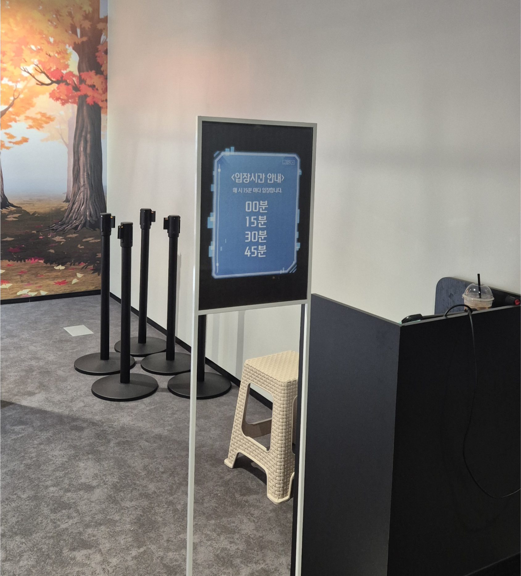 입장은 3시 타임이면 아무때나 들어갈 수 있는 것이 아니고 15분 단위로 입장이 가능해요!! 아마 영상 타임이 있다보니 원활한 진행을 위해서 이렇게 한 것 같아요ㅎㅎ!!