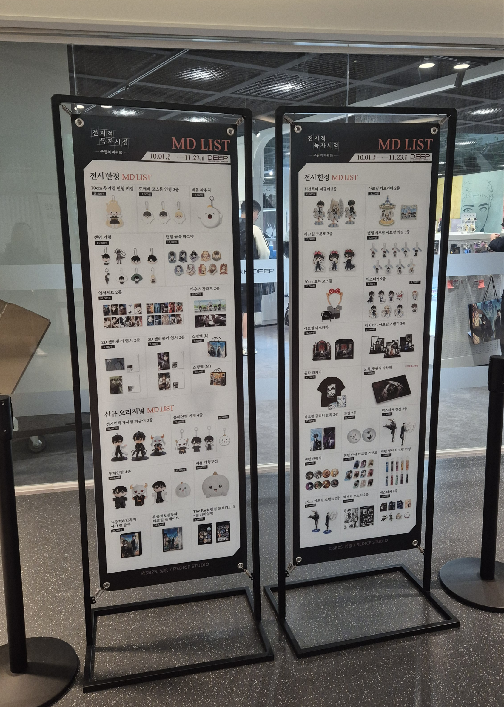 대기줄 쪽에는 MD리스트가 딱 보이고 안에 굿즈샵도 보입니다!